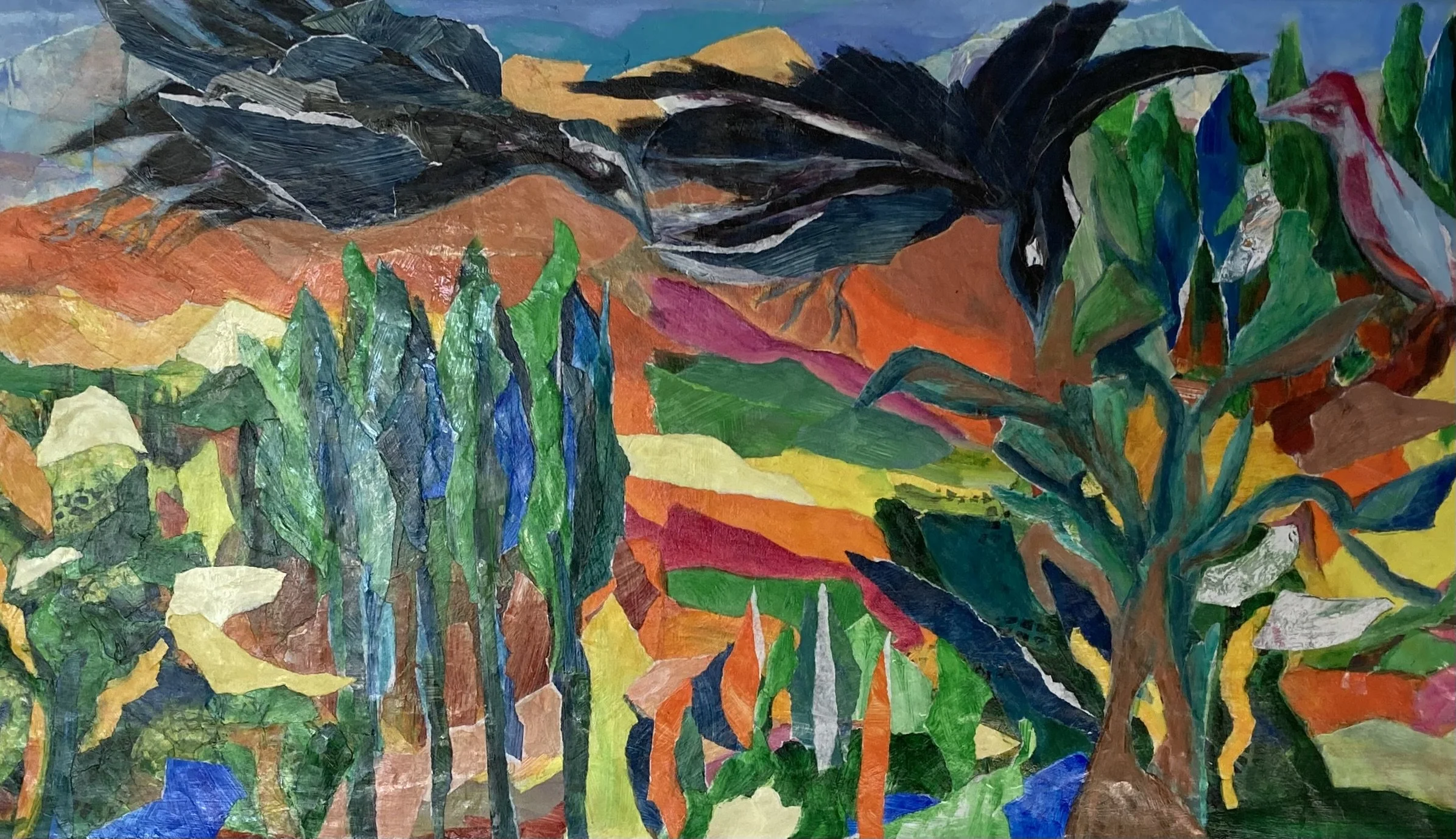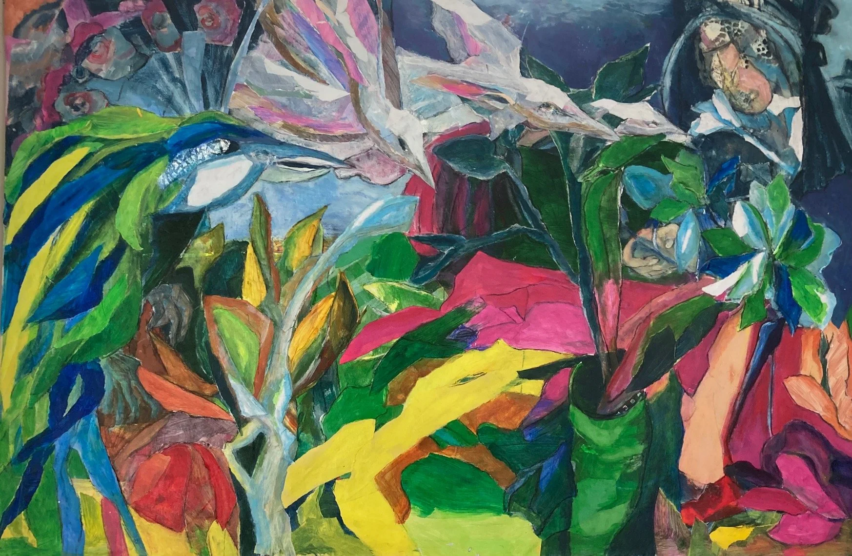 Birds and snakes 83x 65 cm acrylic/collage 250 euros